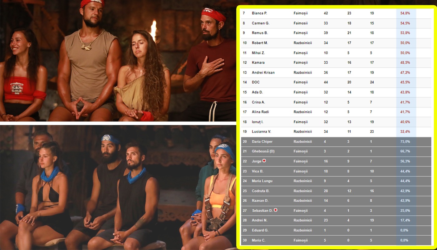 Clasament complet Survivor România All Stars 2024 Cine e pe primul , Clasament survivor românia 2023 actualizat.